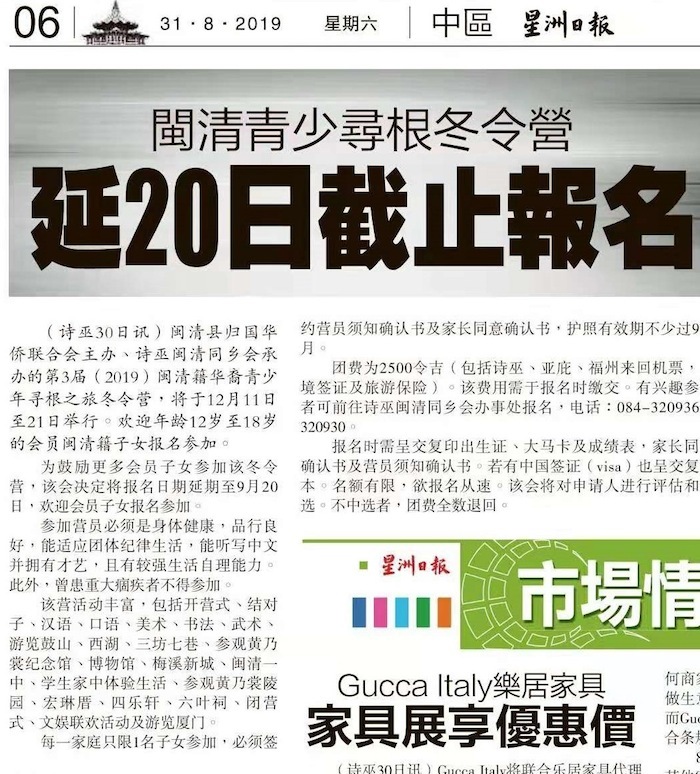 11/12/19 第三届(2019)闽清籍华裔青少年“寻根之旅冬令营