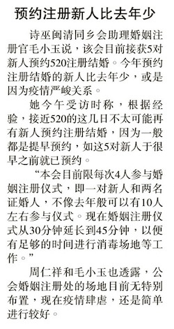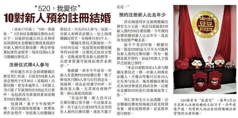 20/05/21 5对新人预约520注册结婚