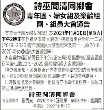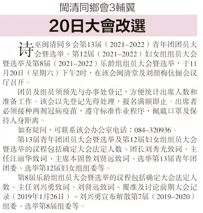 20/11/21 第12届青年团,第11届妇女组,第7届乐龄组团组员大会暨新届选举