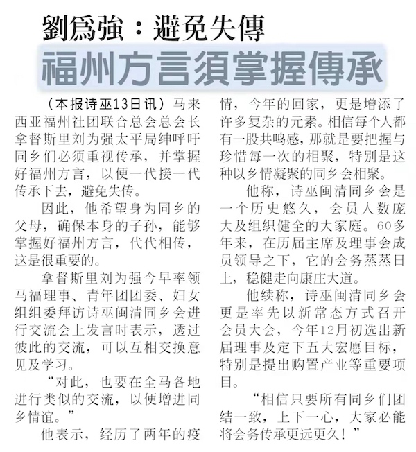 13/12/21 马福总会长拿督斯里刘为强太平局绅及砂福总会长甲必丹拿督刘思乐率领马福及砂福理事,团组委拜访本会