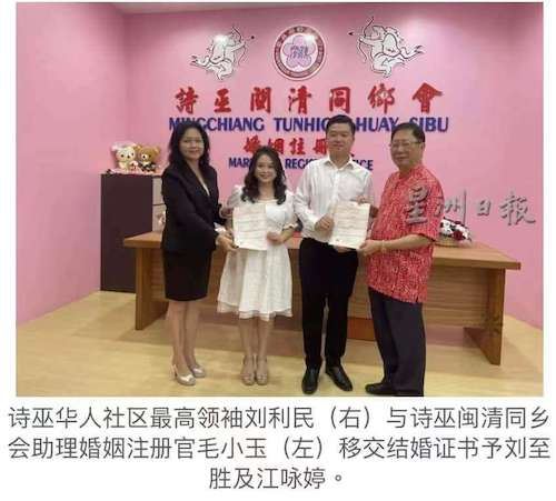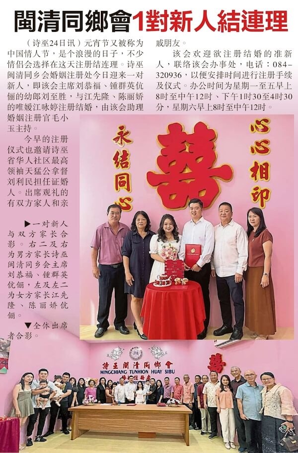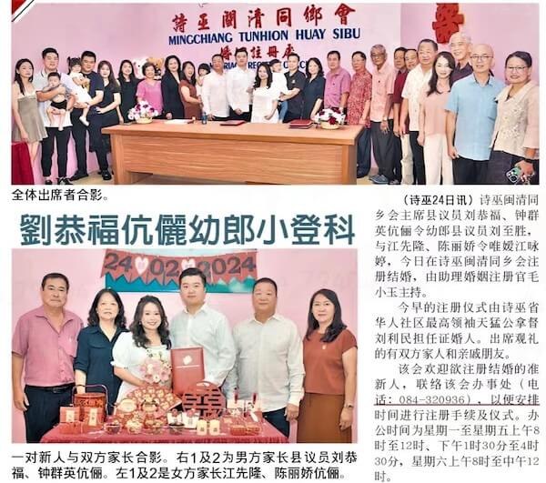 24/02/24 本会主席县议员刘恭福、钟群英伉俪令幼郎县议员刘至胜与江詠婷注册结婚